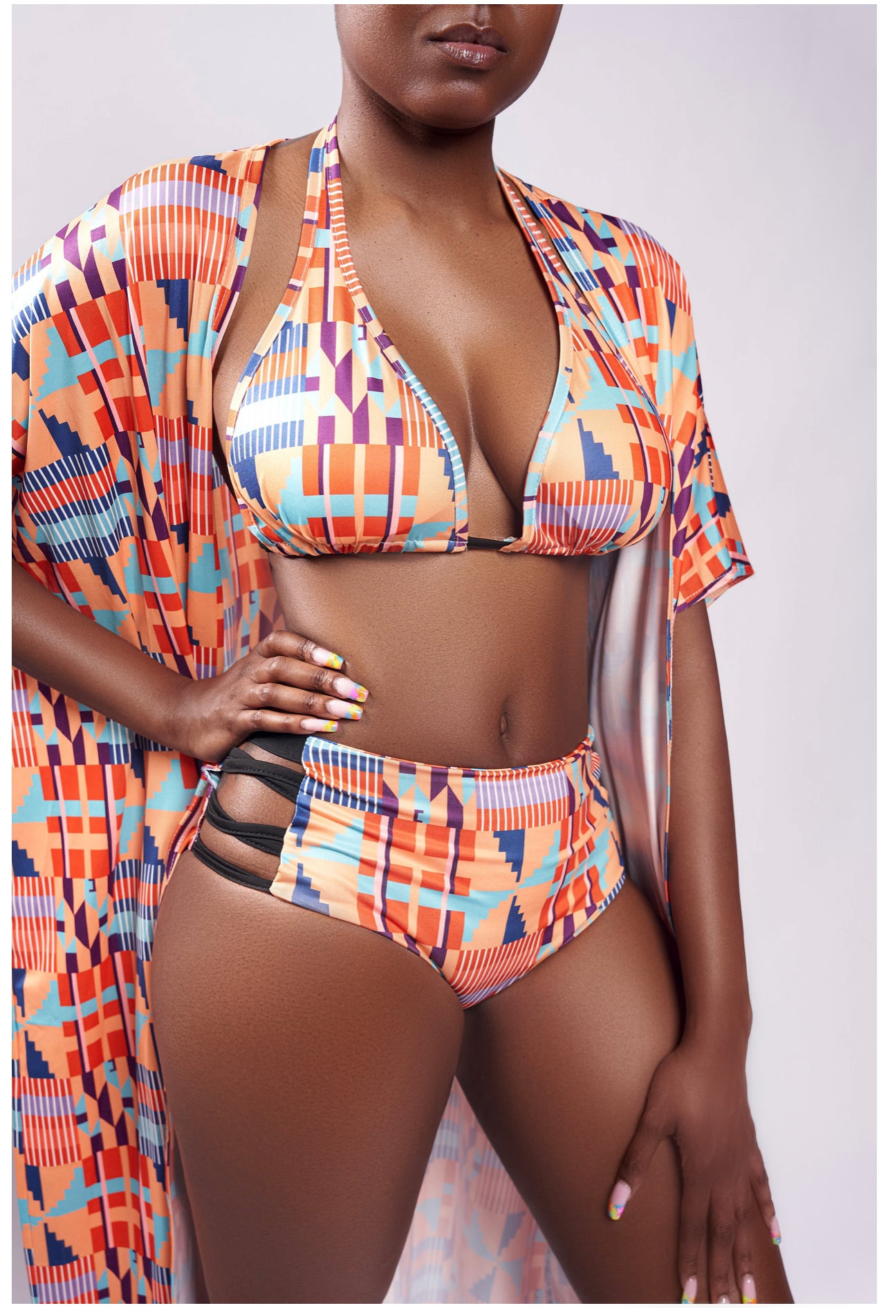 The Anika Bikini Swim with Matching Kimono offers a stylish and comfortable look for the beach. Its lightweight fabric is designed with quick drying technology, making it ideal for swimming and other summer activities. The bikini top and bottom are adjustable and fit true to size, along with the included kimono wrap cover-up to complete the look.